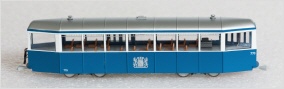 Modell des B 770 in der Ausführung der Epoche 1955-1965 mit ganz blauen Türen und mit Silberlöwenlogo. Die Kleinteile werden werkseitig alle montiert. Die Stromabnahme erfolgt ab allen vier Achsen. Unter dem Wagendach, das ohne Werkzeuge einfach abgenommen werden kann, befindet sich die sechspolige Digitalschnittstelle (NEM 651). Das Modell ist werkseitig für Analogbetrieb ausgerüstet. Das rote Schlusslicht und der Fahrgastraum sind beleuchtet.