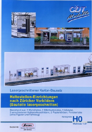 Das modulare Wartehallen-Prinzip für die Haltestellen der Verkehrsbetriebe Zürich kann nun im Modell nachgebaut werden. Der Bastelbogen eignet sich selbstverständlich auch für andere Städte. Die Ergänzung mit dem LUNA-Strassenbahngleis ist problemlos möglich.