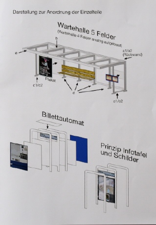 Bausatz von CDT-Werbedruck, der zwei VBZ-Haltestellen mit allem Zubehör ergibt.