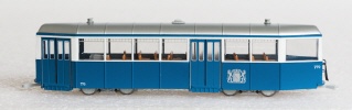 Modell des B 770 in der Ausführung der Epoche 1955-1965 mit ganz blauen Türen und mit Silberlöwenlogo. Die Kleinteile werden werkseitig alle montiert. Die Stromabnahme erfolgt ab allen vier Achsen. Unter dem Wagendach, das ohne Werkzeuge einfach abgenommen werden kann, befindet sich die sechspolige Digitalschnittstelle (NEM 651). Das Modell ist werkseitig für Analogbetrieb ausgerüstet. Das rote Schlusslicht und der Fahrgastraum sind beleuchtet. |