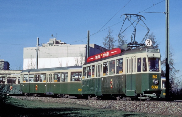 Modell des Be 4/4 609 in der Ausführung der letzten Betriebsjahre. Das mit Liniennummern- und Linienverlaufstafeln der Linie 3 dekorierte Fahrzeug hat werkseitig bis auf den Rückspiegel alle Kleinteile montiert. Werbedachtafeln zur Selbstmontage liegen bei. Der Antrieb erfolgt auf alle vier Achsen. Unter dem Wagendach, das ohne Werkzeuge einfach abgenommen werden kann, befindet sich die sechspolige Digitalschnittstelle (NEM 651). Das Modell ist werkseitig für Analogbetrieb ausgerüstet. Der Frontscheinwerfer, das rote Schlusslicht und der Fahrgastraum sind beleuchtet.