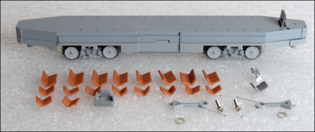 Antriebseinheit Be 4/4 mit einem Satz Fahrgastsitzen, einem Führerstand und einem Schaffnersitz. Der unter dem Wagenboden versteckte Motor treibt alle vier Achsen an. Diese Antriebseinheit kann Ihnen bei Ihrem Eigenbau wertvolle Hilfe leisten. |