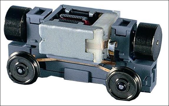 Zweiachsiger Antrieb zur nachträglichen Motorisierung der Oldtimer-Modelle. Der Achsstand kann bei 23 mm und bei 30 mm eingestellt werden. Ausführung mit Vollrädern. |