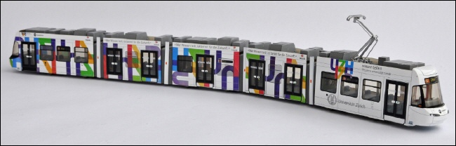 NAVEMO realisierte in Zusammenarbeit mit der Universität Zürich das Universitätstram Be 5/6 3027, welches in einer einmaligen und limitierten Auflage erschien. Aufgrund der vielen Farben waren sehr viele Druckvorgänge nötig. Das Modell stellt einen wahren Blickfang dar.