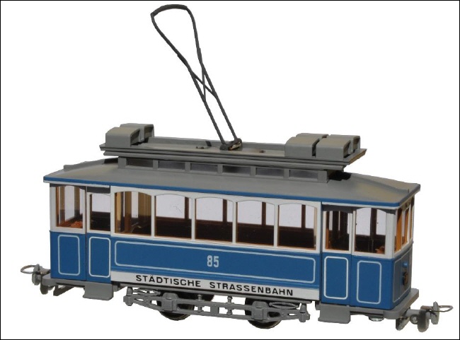 Das motorisierte Modell verfügt über einen Gleichstrommotor, der mit maximal 10 V Gleichstrom betrieben werden darf. Der Lyra-Stromabnehmer ist aus Metall, elektrisch jedoch nicht angeschlossen.