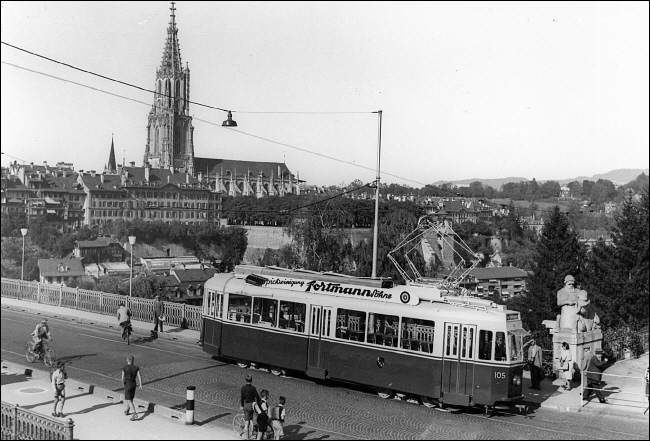 Wunderschöne Aufnahme des Motorwagens Be 4/4 105 kurz nach seiner Ablieferung |