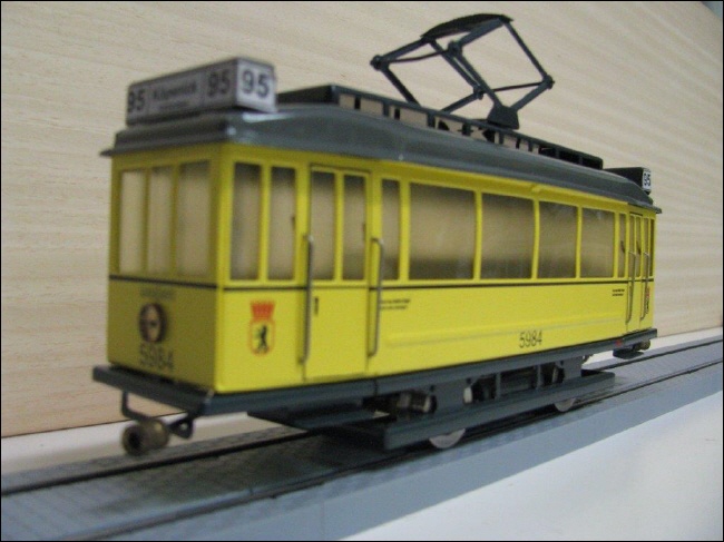 Triebwagen Nr. 5984 aus Berlin, gelb, Ausführung als Dreileiter-Gleichstrommodell, Spur 0 |