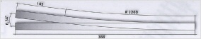Diese Weiche ist ein Abbild der Weiche 190-1:9. Bei dieser Weiche endet der Bogen vor dem Herzstück und das Endteil der Weiche ist gerade. Die Zweiggleis-Endneigung ist hier 1:9. Im ELITE-Programm kann damit die Weiche 760-1:18,5 dargestellt werden.