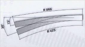 Innenbogenweiche 15°/30°, Herzstückwinkel 11°, rechts curved right point 15°/30°, frog angle 11°